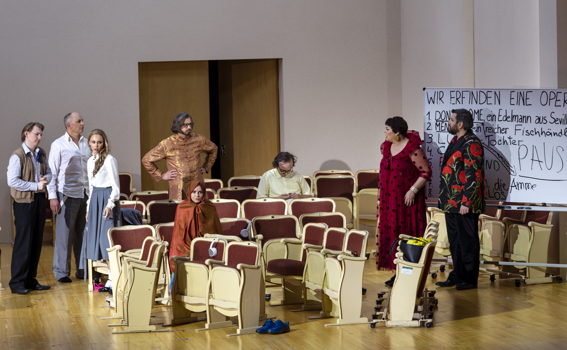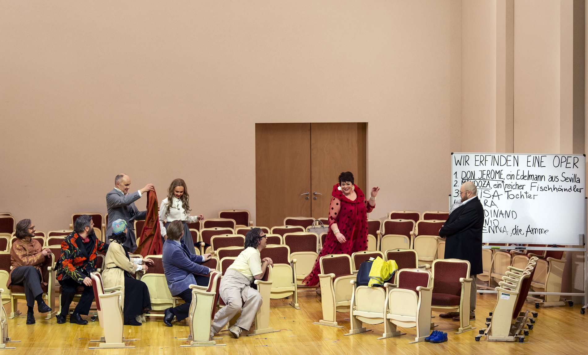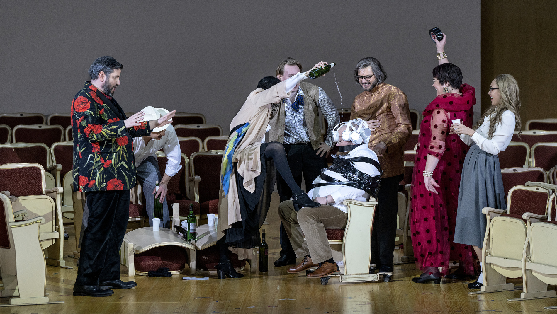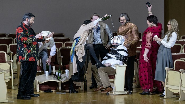 Они устали от оперы. Стареющая дива, певец-любитель, блогер, озлобленный критик, разочарованная поклонница Йонаса Кауфмана, который не отвечает на её чувства, и другая пёстрая компания – члены Opera Addicts Anonymous («Общества анонимных операголиков»). Дмитрий Черняков трансформирует оперу в терапевтическую ролевую игру – но справится ли новейшая методика и модератор курса с любовью к опере? В новой реальности оперы Чернякова актёрский состав блеснул особенно ярко: Виолета Урмана и Богдан Волков явно наслаждаются шансом сыграть самих себя, Аида Гарифуллина предстаёт в роли восторженной поклонницы, Штефан Рюгамер радует искусной игрой на кубках и неожиданным финалом, а высококлассный профессионал Андрей Жилиховский виртуозно изображает баритона-любителя.