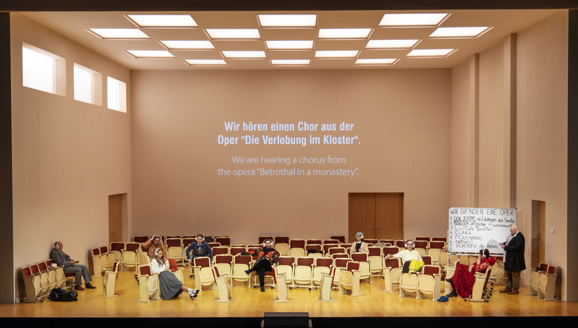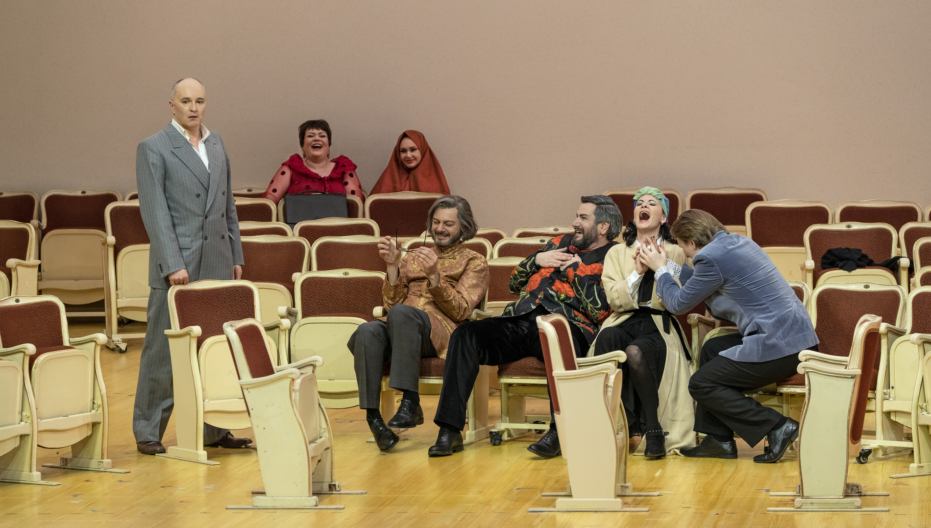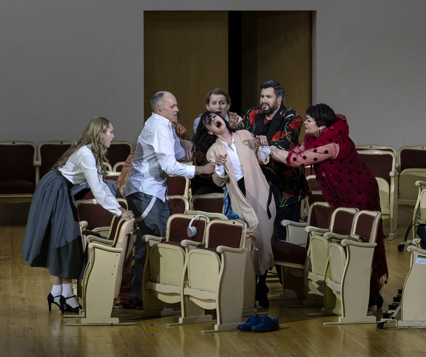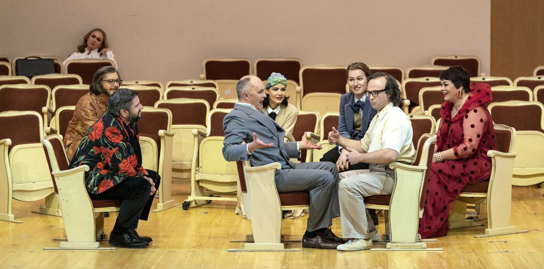 Они устали от оперы. Стареющая дива, певец-любитель, блогер, озлобленный критик, разочарованная поклонница Йонаса Кауфмана, который не отвечает на её чувства, и другая пёстрая компания – члены Opera Addicts Anonymous («Общества анонимных операголиков»). Дмитрий Черняков трансформирует оперу в терапевтическую ролевую игру – но справится ли новейшая методика и модератор курса с любовью к опере? В новой реальности оперы Чернякова актёрский состав блеснул особенно ярко: Виолета Урмана и Богдан Волков явно наслаждаются шансом сыграть самих себя, Аида Гарифуллина предстаёт в роли восторженной поклонницы, Штефан Рюгамер радует искусной игрой на кубках и неожиданным финалом, а высококлассный профессионал Андрей Жилиховский виртуозно изображает баритона-любителя.