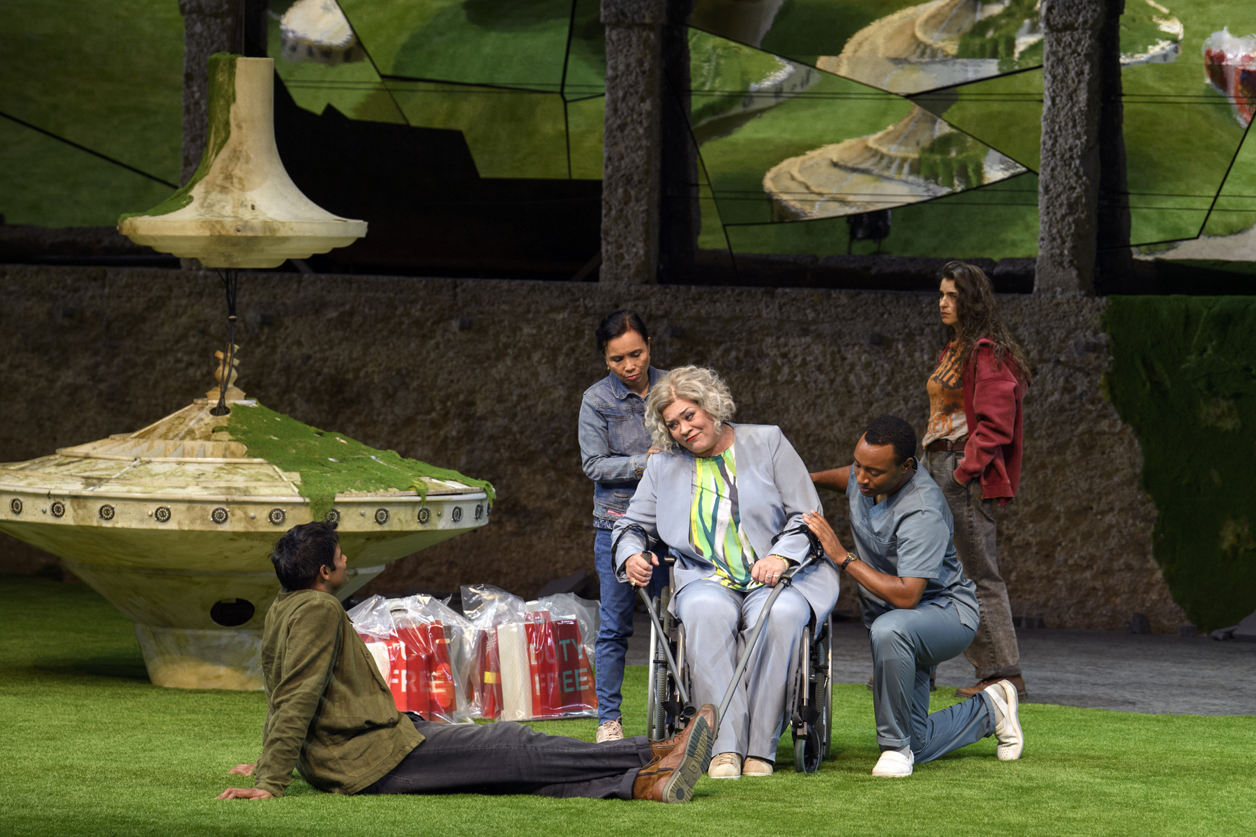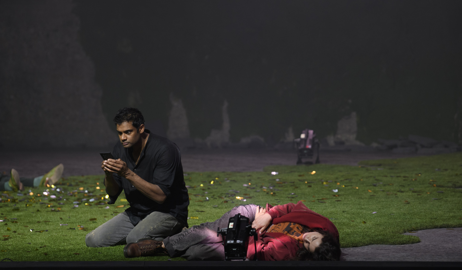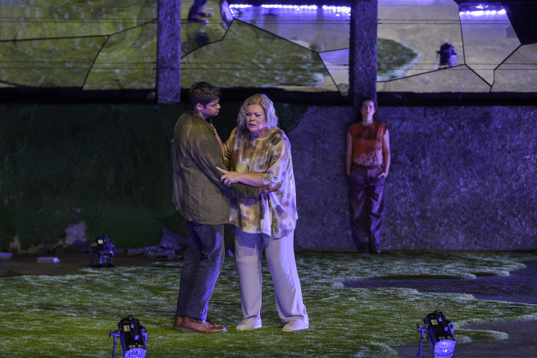 Прокофьев упростил и оптимизировал сюжет «Игрока» Достоевского, сократив количество актёров до десяти, а Питер Селларс, удивительно эффектно обыграв специфическое пространство зальцбургской сцены Фельзенрайтшуле, осовременил и политизировал события. Сотовые телефоны, электронные письма, экопротесты и морализаторство, осуждающее капитализм, – и всё это на фоне настоящего светового шоу с огромными рулетками, взмывающими в воздух, как НЛО. Кто из персонажей – тот самый Игрок? Возможно, отставной Генерал в исполнении китайского баса Пэйсинь Чэня или его родственница Бабуленька (Виолета Урмана). Или учитель генеральских детей Алексей (Шон Паниккар). Или она – роковая женщина Полина – блестящая литовская сопрано Асмик Григорян?
