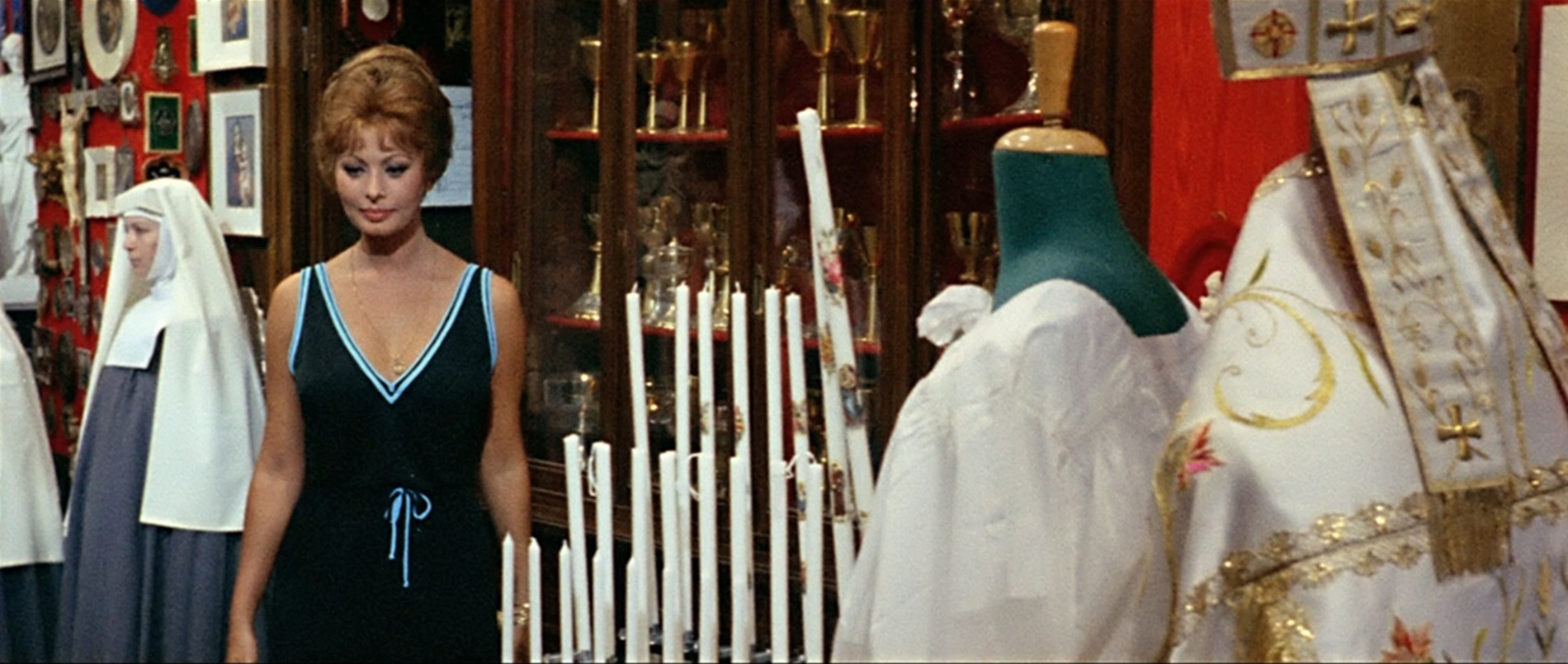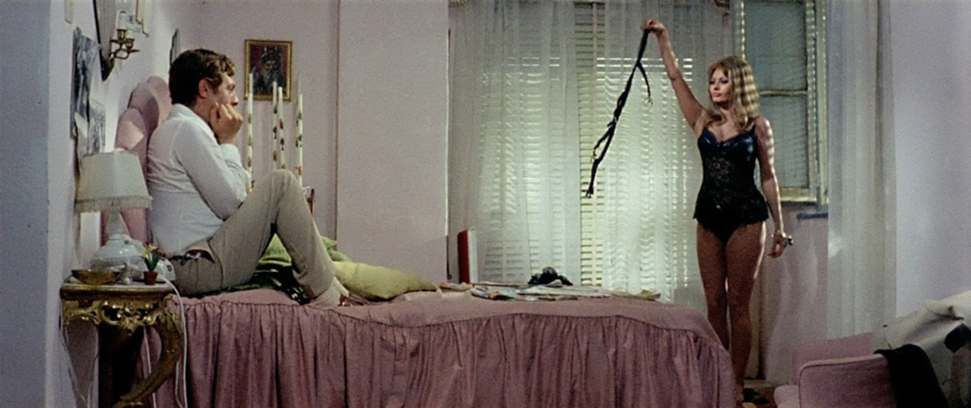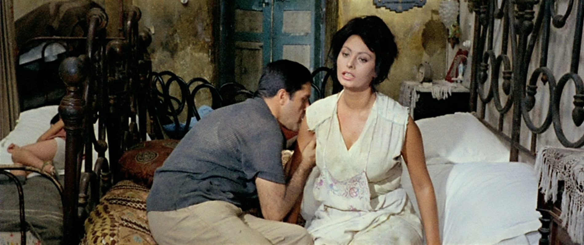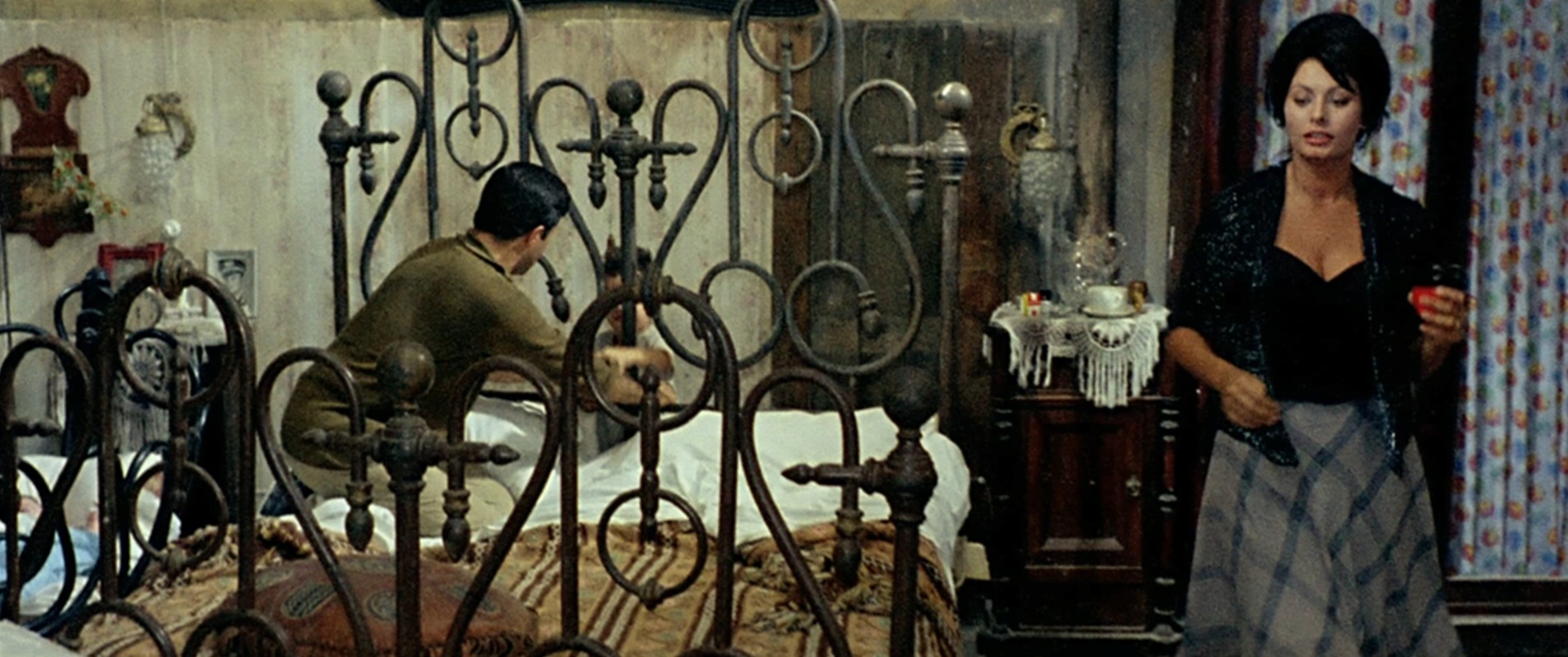 В этой картине выдающегося итальянского режиссера Витторио де Сика (1902-1974) родился один из самых знаменитых дуэтов мирового кинематографа: София Лорен (род. 1934) - Марчелло Мастроянни (1924-1996). После фильма «Брак по-итальянски» (1964) эта актерская связка стала не менее популярной, чем голливудский дуэт Кэтрин Хэпберн - Спенсер Трейси.Лорен и Мастроянни исполнили здесь по три роли в трех комедийных новеллах о том, как итальянские женщины добиваются желаемого с помощью своей сексуальной привлекательности.Очень эротично выглядит Лорен, сыгравшая: жену безработного, вынужденную торговать контрабандными сигаретами и рожать детей одного за другим, чтобы судебные приставы не описали имущество; эгоистичную светскую даму, выкидывающую своего любовника из автомобиля из-за ерунды; девицу легкого поведения, давшую обет целомудрия на целую неделю... в тот момент, когда приехавший к ней любовник уже готов удушить её в порыве страсти. Несчастный герой Марчелло Мастроянни пасует перед животной энергией своей пассии во всех рассказанных историях.